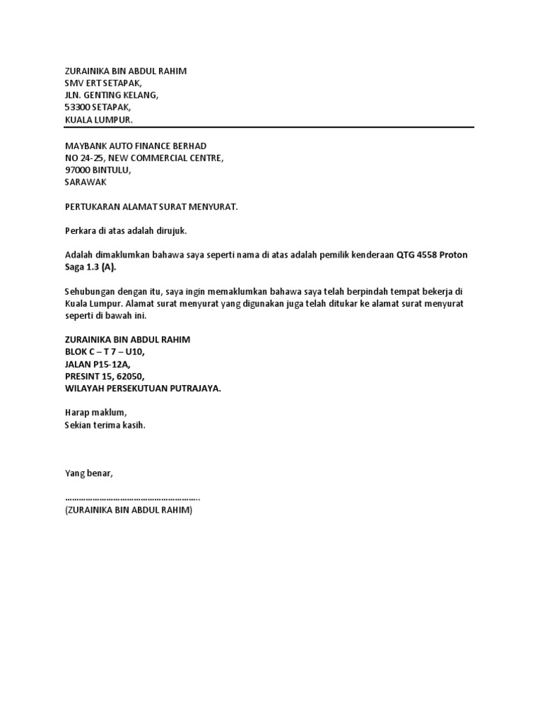 Contoh Surat Rasmi Pertukaran Alamat Syarikat Rasmi B Otosection